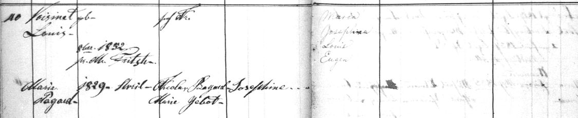 Source: St. Joseph (Buffalo, New York), Church Records, Family register, before 1872, Louis and Marie (Bagard) Voisinet; FHL microfilm 1292854, Entry 40.