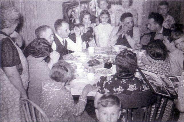 Mary Ann (Yuncker) Voisin [00020] family at the dinner table.