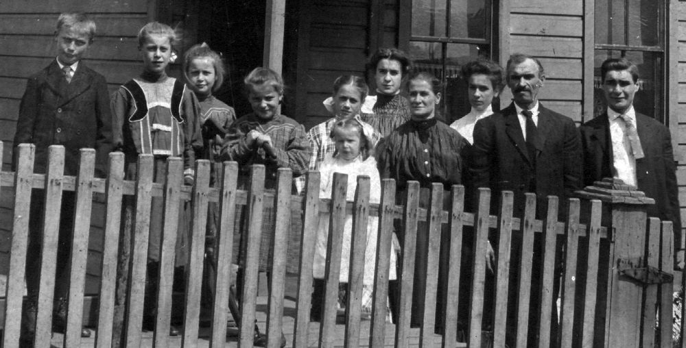 Left to right: Frank, Anna, Christina, Barbara, Teresa behind Catherine, Mary, Maria "Mary," Adelheid "Ida," Albert, "Albert" Leopold