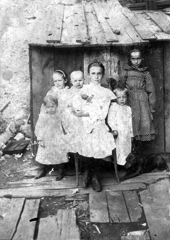 These are children of Albert Pohl [00546] and Maria "Mary" (Bittner) Pohl [00547]. My grandmother Adelheid "Ida" is the little girl standing on the right. She looks to be about seven to nine years old so the photograph was probably taken about 1898.