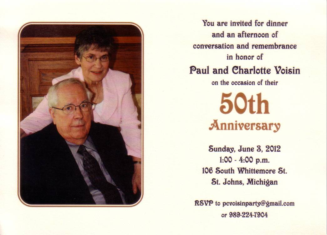 Fiftieth wedding anniversary invitation for Paul James Voisin [00011] and Charlotte Ann (Simon) Voisin [00024], June 3, 2012.