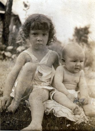 Ruth Phyllis (Stewart) Voisin [00002], age 4, with Ruth Marx, age 4 months, July 4, 1931.