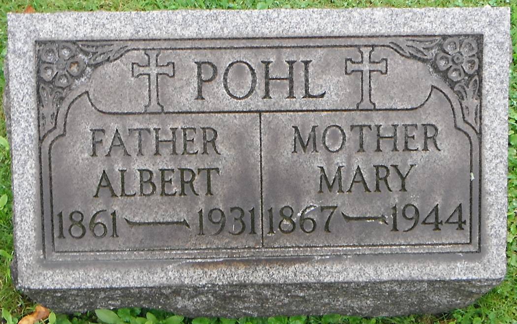 Source: Jim Tipton, Find A Grave (http://www.findagrave.com/ : downloaded 3 February 2015), Albert Pohl, 1861-1931, Memorial 134304028.