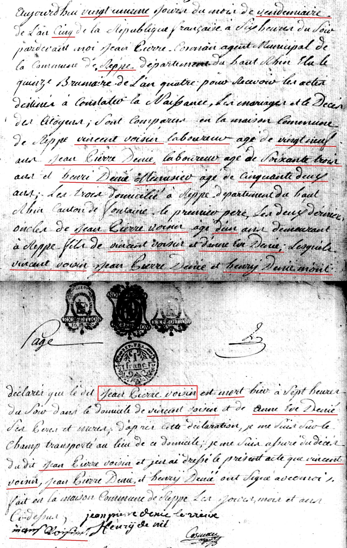 Source: Departmental Archives of Belfort, France, Archives départementales du Territoire de Belfort (http://www.archives.cg90.fr/ : downloaded 10 October 2017), Etat Civil, Reppe, "Deces" (Deaths) 1793-1803, image 23 of 65.