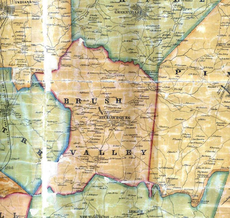 Source: Source: "Indiana County, Pennsylvania 1856 Peelor Map," images, Carla A. Currie, Treasures of the Past (http://freepages.genealogy.rootsweb.ancestry.com/~treasures/pa/indiana/maps/peelor1856/: downloaded 8 December 2009), Map of Indiana County, Pennsylvania; citing Map of Indiana County Pennsylvania from actual surveys by David Peelor. Published by William J. Barker, North Hector, New York, 1856.