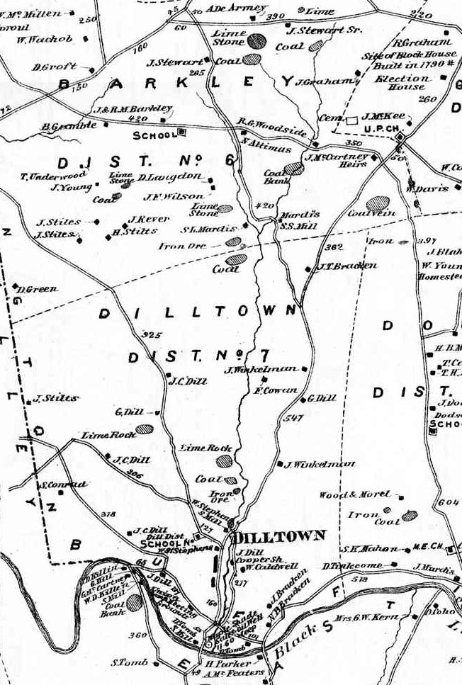 Source: "State and County Maps: Pennsylvania: County Maps and Atlases," map images, USGenWeb Archives, United States Digital Map Library (http://www.usgwarchives.org/maps/pa/county/: downloaded 9 December 2009), Map of Buffington Township, Indiana, Pennsylvania; citing Atlas of Indiana County Pennsylvania, (New York: F.W. Beers & Co., 1871).
