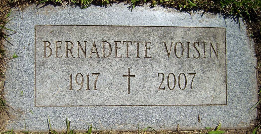 Source: Jim Tipton, Find A Grave (http://www.findagrave.com/ : downloaded 31 July 2015), Bernadette Voisin, Jun 30, 2007, Memorial 149584109.