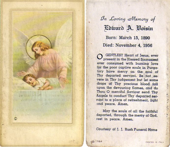 Source: Edward A. Voisin, Funeral Card (Mount Pleasant, Michigan: J. J. Rush Funeral Home, 1956).