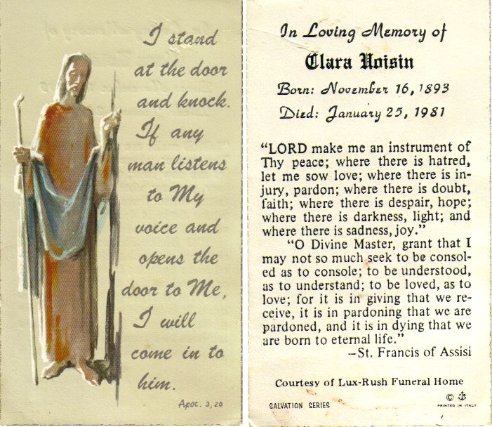 Source: Clara Voisin, Funeral Card (Mount Pleasant, Michigan: Lux-Rush Funeral Home, 1981).