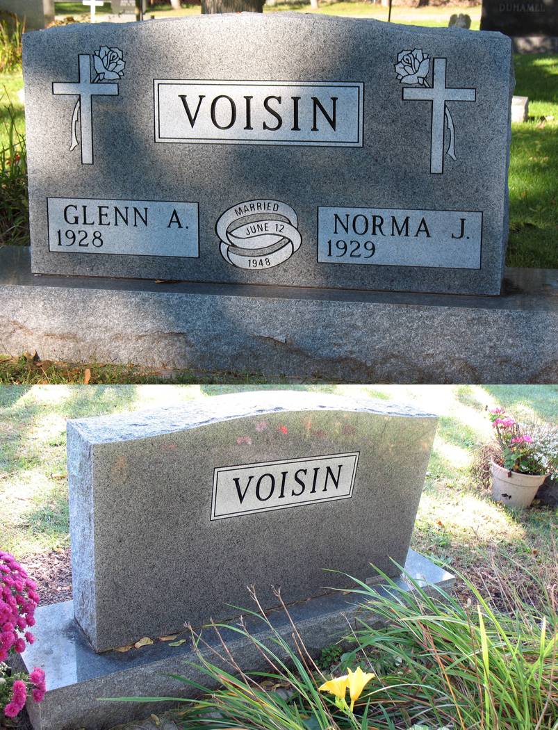 Source: "Photographs," September 22, 2015, Calvary Cemetery, Mount Pleasant, Michigan, Grave marker of Glenn and Norma Voisin, John M. Voisin, Huntsville, Madison, Alabama.