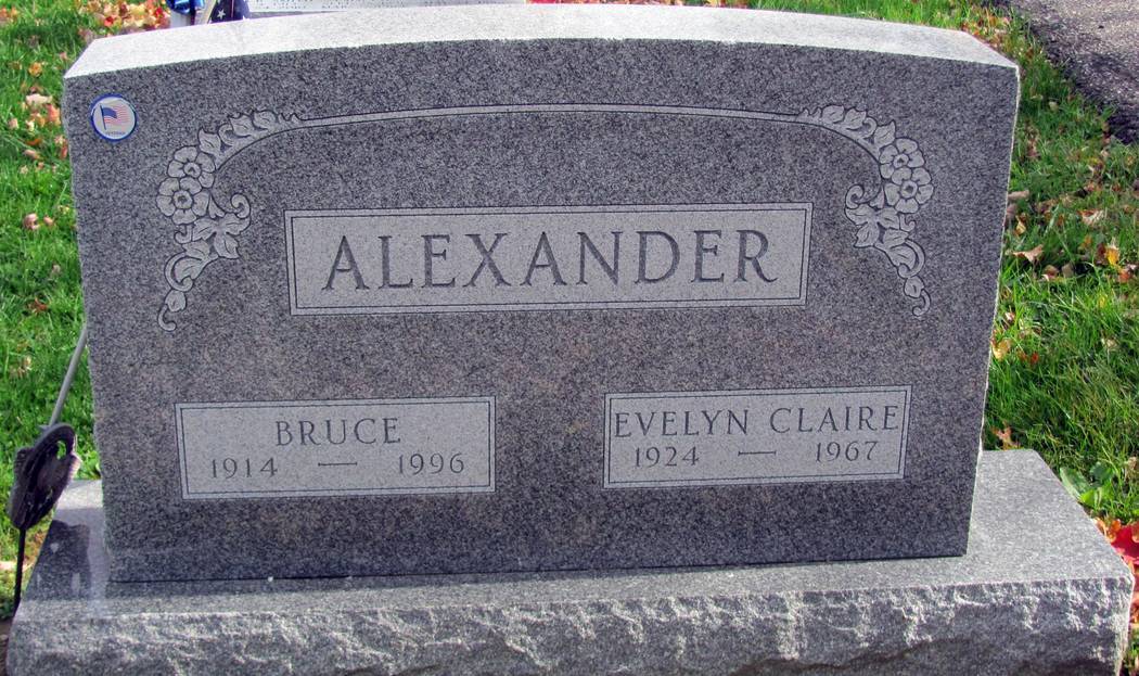 Source: Jim Tipton, Find A Grave (http://www.findagrave.com/ : downloaded 6 February 2015), Bruce Alexander, 1914-1996, Memorial 99026046.