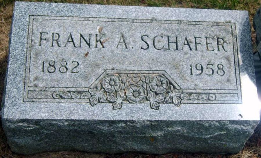 Source: Jim Tipton, Find A Grave (http://www.findagrave.com/ : Downloaded 25 September 2011), Frank A. Schafer, Memorial 76935140, Saint Joseph Cemetery, Beal City, Isabella, Michigan.