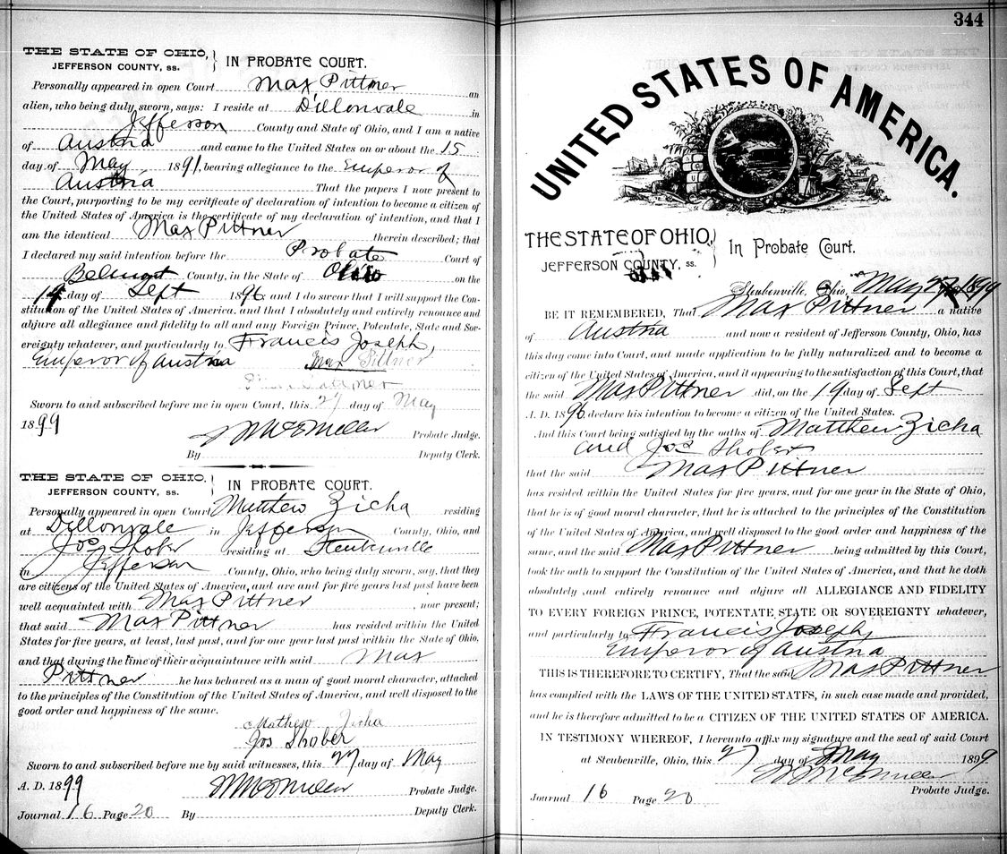 Application for, and certificate of, United States citizenship for Maximilian Pittner [I01952].