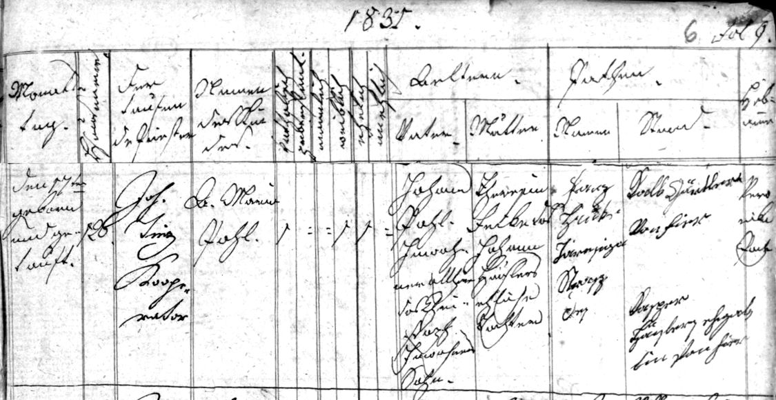 Source: Rímskokatolická fara Vápenná [The Roman Catholic rectory Vápenná], Vi VII 3, Inventory 3478, nemcina [German], 1831 - 1852, N, I-N [Births, Births Index], Zemský archiv v Opave [Provincial Archives in Opave], Vápenná, Polka, Czech Republic, Page 9, A Maria Pohl, September 17, 1831.