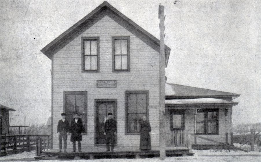 Beal City post office, undated, Beal City, Isabella, Michigan. The people are not identified, but it is possible they could be Yuncker family members. The older gentleman and lady could even be Jacob and Margaret Yuncker, if the photograph were taken prior to Jacob's death in 1905.