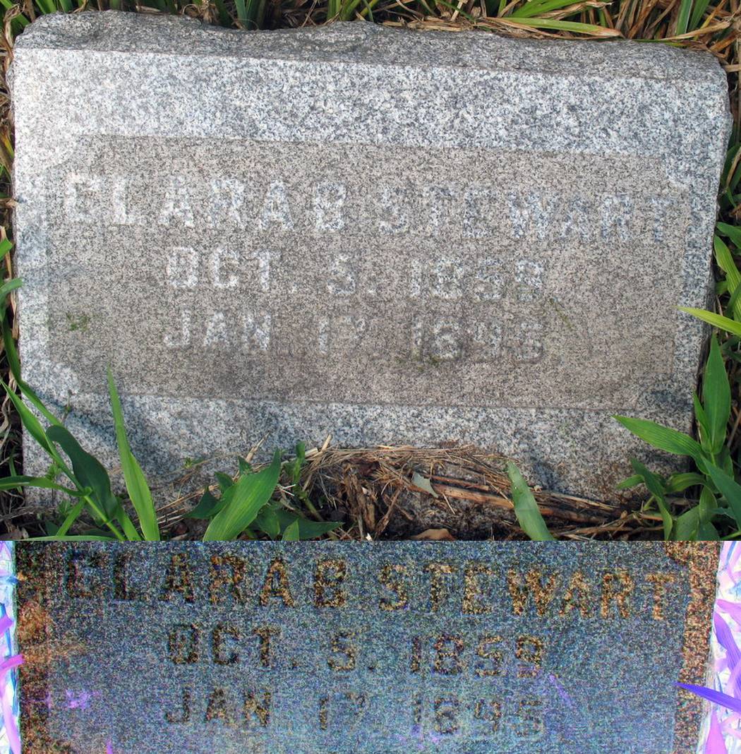 Source: Jim Tipton, Find A Grave (http://www.findagrave.com/ : downloaded 3 February 2015), Clara B. Stewart, Oct. 5, 1893 [1859] - Jan. 17, 1895, Memorial 133509349.
